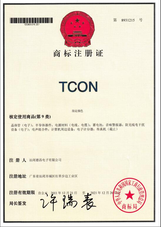 是汕尾德昌電子有限公司在中國的注冊商標(biāo)之一,受法律保護(hù),侵權(quán)必究。